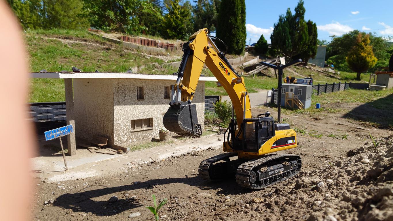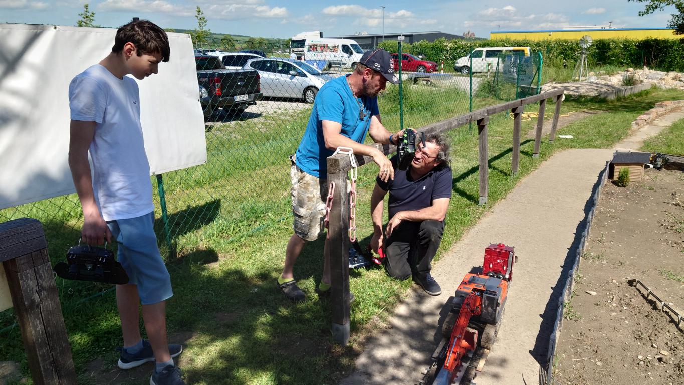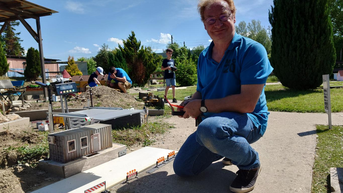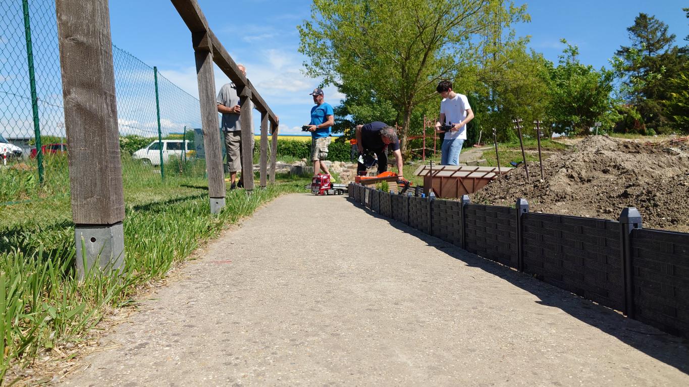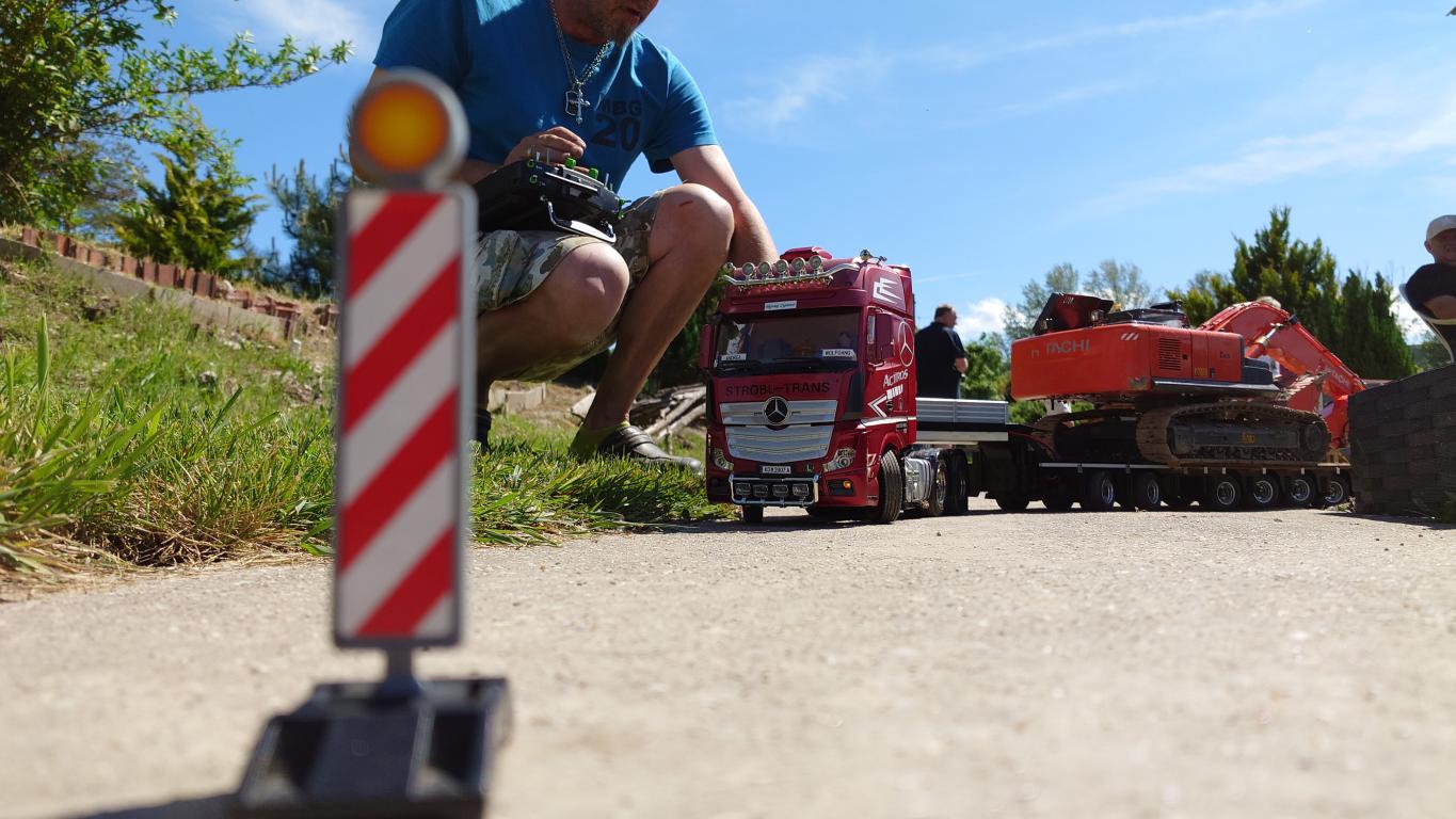 Nach einem unheimlich heftigen Gewitter mit Regengüssen in der Nacht auf Samstag war uns allen Bange, ob wenigstens der Samstags-Wetterbericht stimmen würde. Die Shortcourse-Rennbewerbe mussten zwar wegen der Unbefahrbarkeit der Strecke ausfallen, doch wir Erdbeweger hatten dafür "Kirtag". Schon die Morgensonne liess die Erde handfeucht bis trocken werden, ideal weich und trotzdem nicht klebrig. Sonnig, leichter Wind, tolle Stimmung und sehr viele Besucher, überwiegend Vereinskollegen. Von der Modellbau-Prominenz konnten wir u.a. Rene Gatti begrüßen, bekannt durch seine Eigenbauten, beispielsweise den ZIS 150 (Bericht "Altes Eisen", siehe hier)